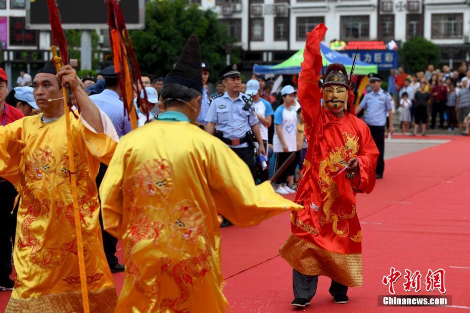 6月30日,中国唯一毛南族自治县——广西河池市环江毛南族自治县民众庆祝传统节日“分龙节”。分龙节是毛南族最古老、最盛大、最重要的节日,是祈佑风调雨顺、五谷丰登,民众幸福安康、吉祥如意的节日。图为分龙节祈福仪式。中新社记者 俞靖 摄