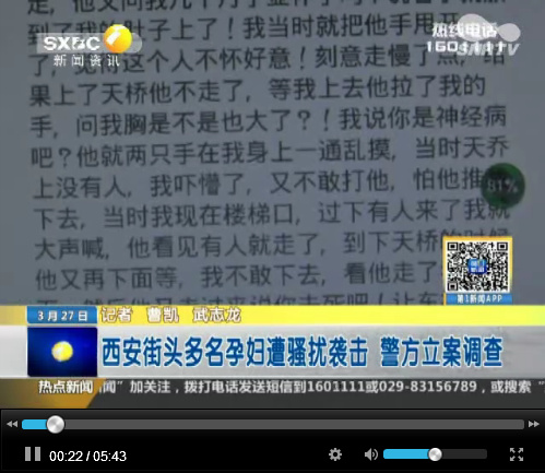 最近,在西安北大街附近发生多起孕妇遭到中年男子骚扰甚至攻击的事件,尽管有受害者已经报警,但袭击孕妇的男子仍然没有找到。